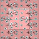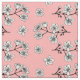 Pretty floral fabric patterned with white Japanese sakura blossom flowers over a pastel pink background