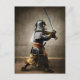 A striking colorized photo of a Japanese folk dressed in full traditional Japanese armor, wielding a katana sword in a fighting pose.