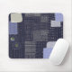 Dark blue mouse pad with traditional japanese sashiko printed design that resembles stiches and patches.