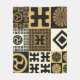 A set of japanese style seamless patterns, tribal and geometrical symbols, in a black and gold palette