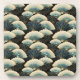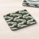 Japanese Style Cream Gold Teal Fan Print Beverage Coaster