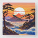 Japanese Sunrise Sunset Landscape Square Wall Clock