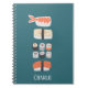 Celebrate your love for sushi with this personalized notebook featuring a fun medley of hand-illustrated Japanese sushi icons on a stylish teal green background. From maki to nigiri, the playful food motifs add a touch of joy to your writing or journaling. Perfect for students, sushi fans, or anyone who appreciates clever design and Japanese pop culture aesthetics. Change the name to personalize. Original art by Nic Squirrell.