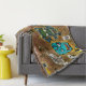 A quality printed throw has its advantages. This is a much finer weave throw than its loopier cousins, and though lighter, it is worth the investment for custom room accessorizing. The back is much prettier than the typical brown, and the fringe on the long sides very vivid, the selvage nicely done. Before photographing, I washed the throw in cold water, delicate, with a thicker woven throw the same size. On tumble dry low, this throw was dry in half the time as the other. This is a very practical quality if you use throws for furniture covers or to wrap up in frequently. The sleekness of the fabric makes it a great layer for accenting or protecting without the feeling of sitting on too much stuff. Perfect for napping or when you feel a light chill coming on. The color printing is beautiful and on this fabric, matched the design and color of my Photoshop image. This is an advantage for blending room fabrics and colors. The fringe on the short sides prints the colors from the design image and therefore varies from the side fringe. I streaked a white fractal line through the plaid pattern to give the illusion of weaving. This printed as crisp as an illusory thread, and put some white in the short side fringe, showing another advantage of print vs loomed- for artistic purposes, line lines, detail, and color integrity can be planned and preserved. My loomed throws have color limitations and more of a needlepoint texture. Print throws reproduce an exact image. The throw felt a little stiff straight out of the package, but this went away in the first delicate wash. Of course I searched the wash water for ink or bleeding and there was none.