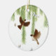 Japanese Tree Sparrows Under a Weeping Willow Cera Ceramic Ornament