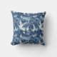 Japanese water garden in a blue white porcelain throw pillow