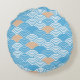 Japanese Waves Pattern Light Blue Beige White Round Pillow