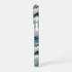 Make a statement with this iphone 16 pro phone case that features rolling Japanese waves in multiple shades of teal blue. It's modern yet traditional. The pattern represents surges of good luck, peace, and eternal resilience. It becomes uniquely yours with your name in a CAP font in white on dark teal.
