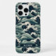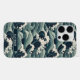 Make a statement with this iphone 16 pro max phone case that features rolling Japanese waves in multiple shades of teal blue. It's modern yet traditional. The pattern represents surges of good luck, peace, and eternal resilience. It becomes uniquely yours with your name in a CAP font in white on dark teal.