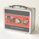 This is a standard metal lunchbox that appears to work just fine. We designed this box ourselves with an uploaded photo and custom text on the front and back. It looks absolutely beautiful except the front of the lunchbox is not centered like it shows in the photo. The print borders don't align with the inset flat part of the box where the preview photo online showed it perfectly centered in there. The back looks nice and centered though.