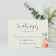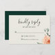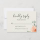 Chic watercolor peach garden peony and leaves, RSVP cards. Personalize text, customize font style, color, and size. Background colors shown in dove and emerald can be customized as well. Designed to match our Jardin De Fleurs Collection.