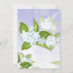 hand drawn white Jasmine flowers on a reflective lilac flowered background. Ideal for announcing that special occasion or for someone who you care about.