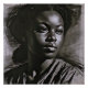 “Jasmine” Women In Charcoal. The portrait captures a beautiful young Black African American woman rendered in charcoal, her face a study in contrasts with bold black and white strokes. She gazes into the distance, lost in deep thought, her expression serene yet contemplative. The contemporary style emphasizes the feminine curves of her face, highlighting her beauty through the dramatic interplay of light and shadow. The simplicity of the monochrome palette enhances her elegance, making the image a powerful and introspective work of art.