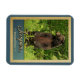 Vintage travel style Jasper National Park image featuring a black bear standing on its hind legs, looking into the green forest.