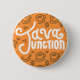 A Java Junction themed button in classic orange with a classy coffee themed pattern.