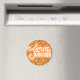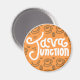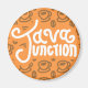 A Java Junction themed magnet in classic orange with a classy coffee themed pattern.
