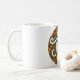 A Java Junction themed mug in coffee brown with a classy coffee themed pattern.