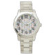 This women's watch has a mid-century modern design of concentric circles of many retro colors on vertical lines repeating across the design. If you like the design but prefer different colors, message me.