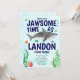 Plain white envelopes are included with paper invitations and will come to fit the invitation size you select. If you don’t need the envelopes, you may choose to not receive them by selecting the dropdown below "Envelopes" and choosing "None." If you’d like to have a design on your envelopes, you can browse all of these available envelopes to find the design that complements your Jawsome Shark Birthday Invitation Under The Sea.