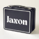 Add a bold touch of personality to everyday routines with this eye-catching metal lunchbox personalized with the name Jaxon in a fun, white contemporary font. Whether Jaxon is gearing up for a brand-new school year or needs a stylish and reliable lunch companion at work, this personalized lunch pail delivers on both form and function. It’s the ultimate back to school essential for students who want to stand out, and it also makes a fantastic addition to any collection of school supplies or work supplies. Durable, reusable, and designed to make lunchtime a little more exciting, this lunchbox brings the perfect mix of practicality and flair.