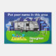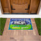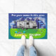 This doormat can be customized to show your name on top. When used outside of your trailer, people will know who they are talking to when they see you. Non-slip rubber that won't crack or buckle, this mat resists fading, mold, and mildew and can be easily cleaned with a hose. This version has a travel trailer similar to a Jayco Jayflight trailer. It can be used indoors or out and makes a great welcome mat for your campsite, wherever you may go.