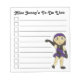 List-style to do list note pad design features an original marker illustration of a girl jazz dancer in a black and purple recital costume. Just personalize with the name of your favorite dancer or dance teacher.