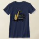 jazz music tshirt with saxaphone image and the words jazz muscic against a black background reminesent of the smokey bars of New Orleans and Mardi Gras, this tee shirt is the perfect gift for any jazz music lover for the next smokey bar night out