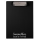 Step up your hairstylist game with this Jazzy Hairstylist Clipboard! This stylish and personalized clipboard features your name and business type beautifully printed on the front plus the eye-catching design on back showcases two white silhouette women's heads, each displaying different hairstyles, and glitter combs/brushes. Add a touch of elegance to the professional brand while staying organized and fashionable as your team is creating stunning hairdos for your clients. Get ready to turn heads in the salon with the Jazzy Hairstylist Clipboard!