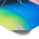 Vibrant square poster with whimsical artwork. This charming tabby wearing a blue grad cap and a tie dye scarf behind a pscychedelic background .