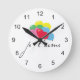 I ordered a small size of Tea Time Green & White Kitchen clock. It's just so cute and matches my kitchen decor!! The picture quality is better than I thought considering most of online orders do not meet buyers' expectations. It weighs only less than a pound. Excellent printing. You are not going to be embarrassed when you give this to your family and friends for a gift. I have failed many times on online orders for poor quality once i received them, but this one surprised me!!