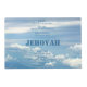 A Christian bible scripture placemat for your kitchen table/dining table in a beautiful blue sky and white clouds with the names of Jehova with the meanings: Jireh "The Lord our provider", Raah "The Lord is our Shepherd, Shammah "The Lord is here", Shalom "The Lord our peace", Rapha "The Lord who heals our disease", Nissi "The Lord our banner".