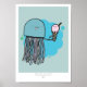 Jellyfish and ice cream A4 print Sage background
