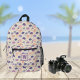 Pastel purple and orange jellyfish adorn this cute backpack, which also features one monogram initial in a fun purple font. This pattern is a cute and unique celebration of those gelatinous marine sea creatures in fun summer colors. Make sure to type your initial in the Personalize section.