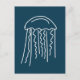 Cute white outline art jellyfish on navy blue backgound. This marine theme aquatic sea life theme modern art is cute and funky. You wish jellyfish.