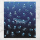 A illustration of a whale and jellyfish swimming in the depths of the ocean. A blue, marine themed Jellyfish pattern.