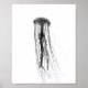 A poster featuring a photograph of a jellyfish in inverted black and white, giving the art print an inky look.