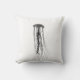 A throw pillow featuring a vectorized photograph of a jellyfish in inverted black and white, giving the art print an inky look. Color on the back is solid gray. Click "Customize it!" to change this.