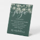 Jenga Wedding Guestbook String Lights Emerald Pedestal Sign