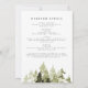 This bachelorette invitation and itinerary template features rustic watercolor pine trees and a rustic handwritten font. Easily edit all wording and fonts to meet the needs of your event. This invitation is perfect for your forest or mountain themed bach weekend.