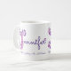 Decorated hand drawn letter with your own name beginning with J and name meaning mug. Pretty heart and flower capital J doodled typographic design featuring hearts and flowers and the words Jennifer Gracious, fair & yielding. An astute leader in pink and purple. © Unique art and design by Sarah Trett. www.sarahtrett.com for www.mylittleeden.com on zazzle