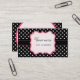 Black and white polka dots background. Black ribbon. Cute pink and light pink frame. Very girly, fashion, modern and professional.