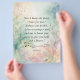 This watercolor design features delicate botanicals in soft shades of blue, green, and coral, creating a serene and dreamy atmosphere. The gentle blending of colors evokes a sense of tranquility and harmony. The inspiring Bible verse, Jeremiah 29:11, is at the center of this composition, elegantly displayed, reminding us of hope and divine purpose. The overall effect is uplifting and calming, making it a perfect addition to any space needing encouragement and serenity. This artwork captures the essence of nature and faith in a visually stunning way.