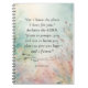 This watercolor design features delicate botanicals in soft shades of blue, green, and coral, creating a serene and dreamy atmosphere. The gentle blending of colors evokes a sense of tranquility and harmony. The inspiring Bible verse, Jeremiah 29:11, is at the center of this composition, elegantly displayed, reminding us of hope and divine purpose. The overall effect is uplifting and calming, making it a perfect addition to any space needing encouragement and serenity. This artwork captures the essence of nature and faith in a visually stunning way.