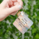 Inspirational quote scripture keychain depicts a beautiful ocean sunset with blue waves on a sandy beach. It features an encouraging Bible Verse Jeremiah 31:3, "I have loved you with an everlasting love." The photograph by Sean Oulashin. _