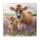 Jersey Cow and Calf Wildflower Ceramic Tile