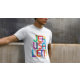 Wear it out loud Jerusalem. Bright primary colors with translucent overlays. Big block letters.