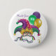 Round button with a festive image of green, purple and gold balloons, a large jester hat and mask balloon, and green and purple beads. See the entire Mardi Gras Buttons & Pins collection in the PARTY FAVORS section.
