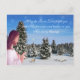 Jesus looking at sheep and a reindeer in the snow. Unique combination of Jesus with a Christmas scene. The messages are customizable for your own words.