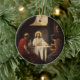 This round ceramic Christmas holiday ornament has a vintage painting of Jesus breaking bread with other men.