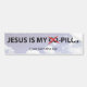 This sticker is a take-off on those "XYZ is my co-pilot" stickers, which is based upon my faith and belief that Jesus guides my actions, and that I have little to no control over most things, even when I feel like I want to be in control. While I may do my little part, He is running the show, not me. It highlights the fact that I, indeed, can do very little to have control over my life, and that Jesus is truly in the driver's seat.